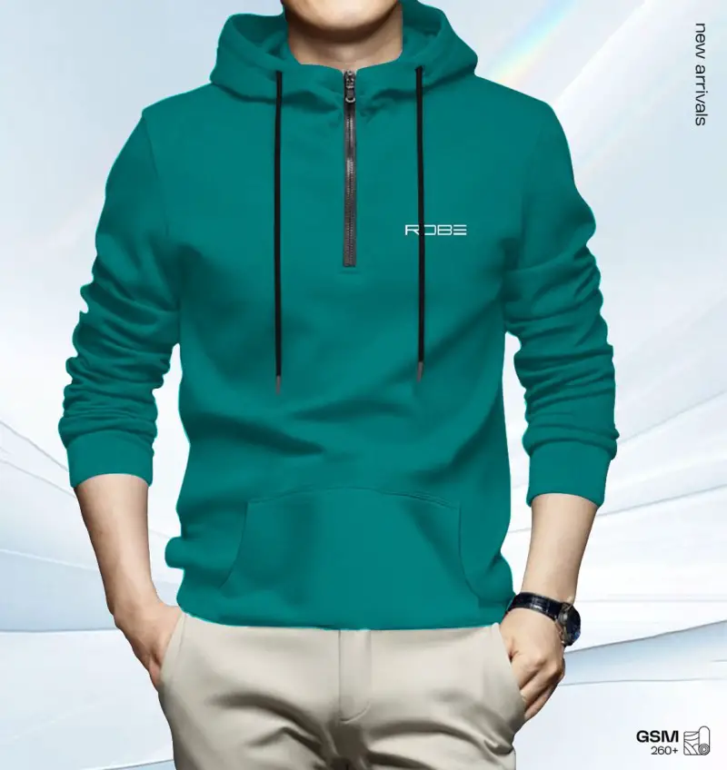 • Men's Winter Hoodie Half Zipper Sea Green (M-01)